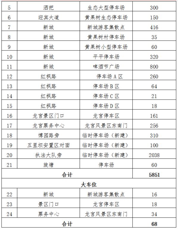 2.该标的共计车位车9132个,出让年限18年(含1年建设期),其中占道临时停车泊位3213个,景区配套停车场、临时停车场车位5919个,停车位分布详见附件1(表1、表2),停车位具体收费标准详见:黄管委发〔2019〕7号黄果树旅游管理委员会关于印发《黄果树旅游区停车场收费管理办法》的通知。