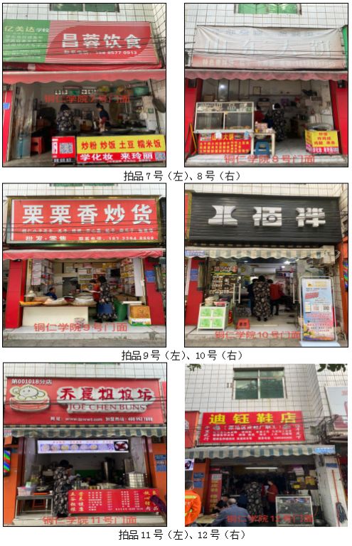 1.拍品1至21号标的位于铜仁市清水大道铜仁学院附中旁,面积7——28㎡,租赁期3年(2021.05.01至2024.04.30止),交通便利,人流量大。