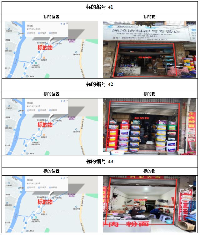 2021年1月28日下午14:00拍卖标的共计38个标的,其中:41—72号标的目前均为租赁状态,如承租人参与竞租,其享有同等价位优先购买权,其余73—78标的为闲置状态。