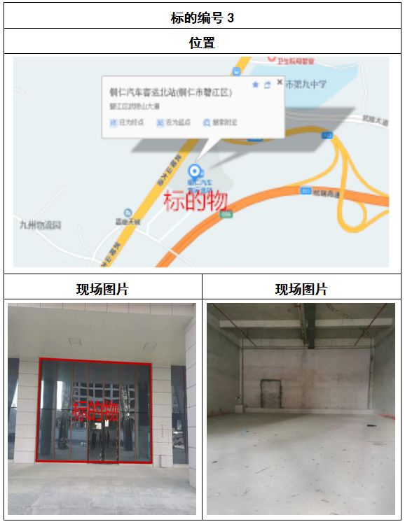 9、铜仁市碧江区川硐汽车客运北站A区进站口负一层9号门面,面积:121.5㎡,租赁期:5年,起拍租金:4495.5元/月,竞租保证金:3万元。