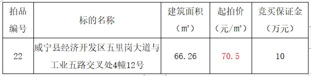 (三)威宁县经济开发区五里岗大道与工业五路交叉处公租房4幢沿街商铺1间,建筑面积:66.26㎡。