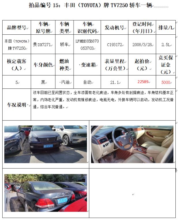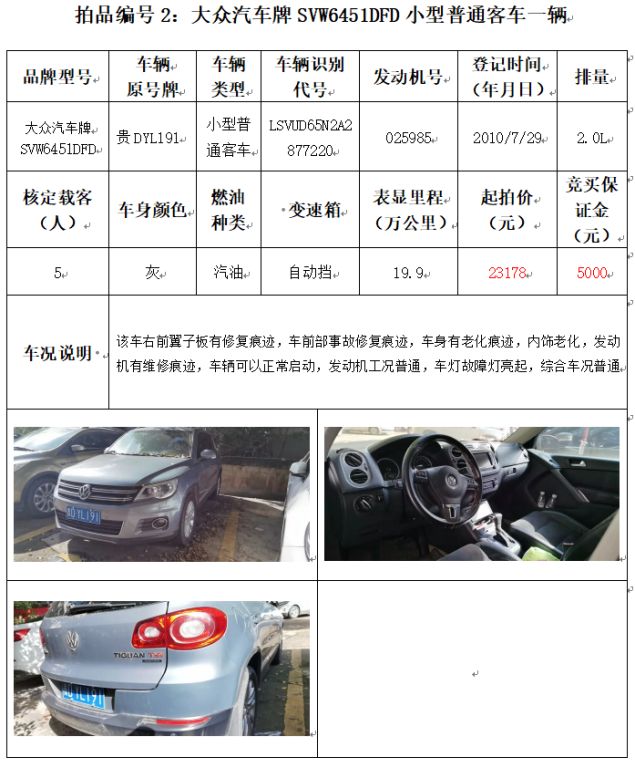 受委托,本公司定于2021年12月10日(星期五)下午14:00时,在铜仁市碧江区川硐教育园区诚信路铜仁市公共资源交易中心开标六室(拍卖大厅)公开拍卖以下车辆: