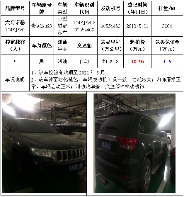 拍品编号1:大切诺基1C4RJFAG小型越野客车一辆