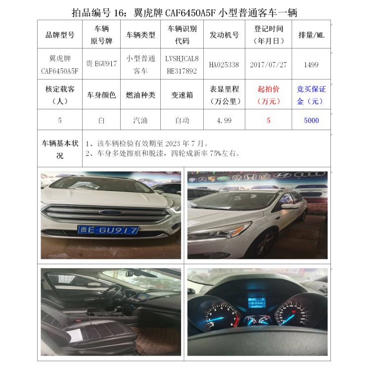 受委托,我公司定于2022年5月31日(星期二)下午14:30在贵州省兴义市桔山大道维也纳国际酒店13楼会议室公开拍卖以下标的: