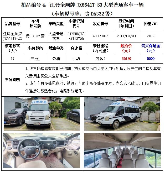受委托,我公司定于2024年5月24日(星期五)下午14时,在铜仁市碧江区川硐教育园区诚信路铜仁市公共资源交易中心开标一室公开拍卖以下标的: