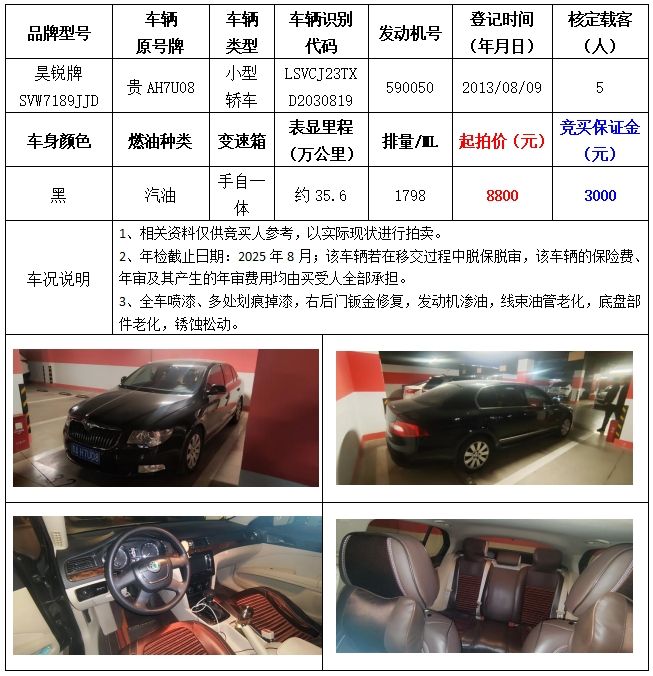 拍品编号4:昊锐牌SVW7189JJD小型轿车一辆