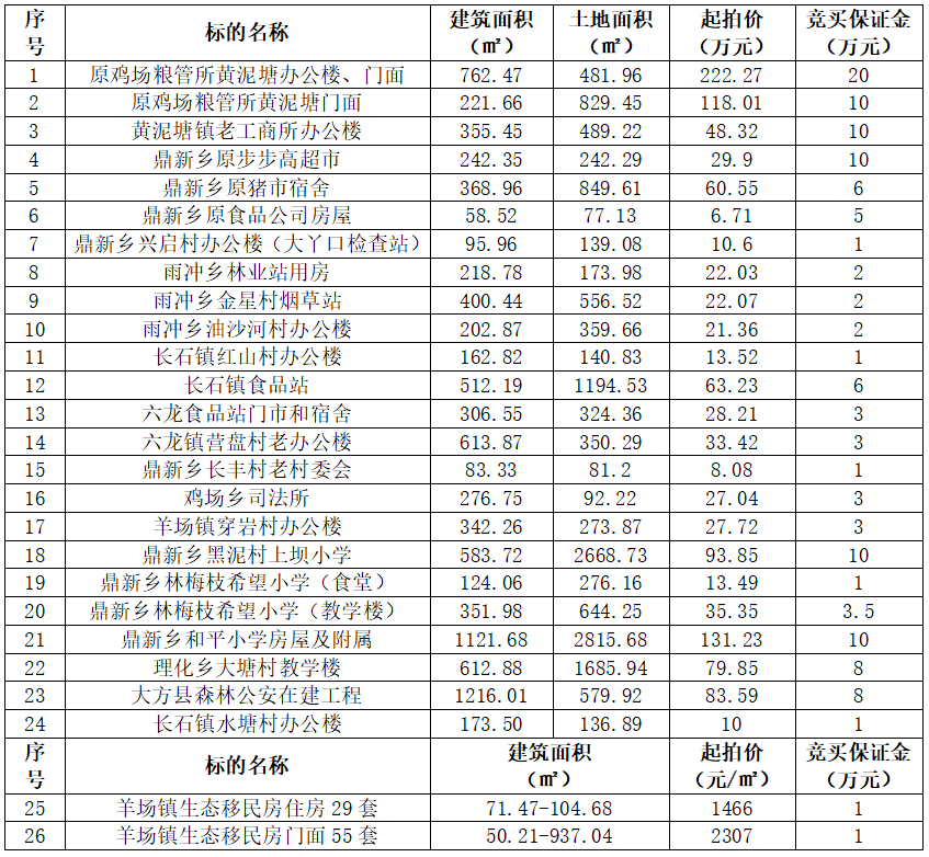 【11月14日】大方黄泥塘镇、鼎新乡、雨冲乡、长石镇、六龙镇、鸡场乡、理化乡、羊场镇、大海坝房地产拍卖公告