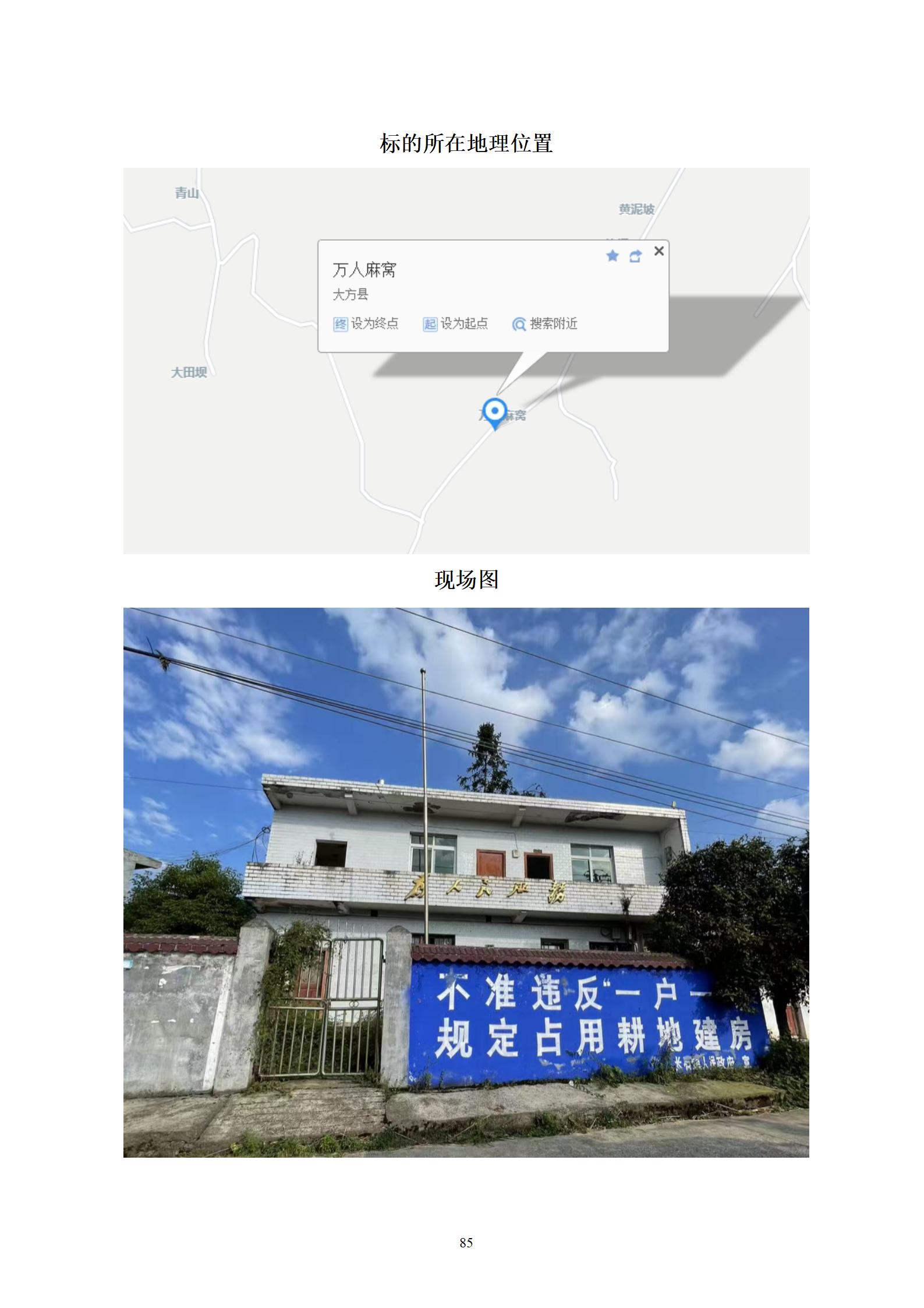 标的位于鸡场乡鸡场村。建筑面积:276.75㎡,土地面积:92.22㎡,建筑结构为混合结构,总层数为3层,土地性质为划拨。
