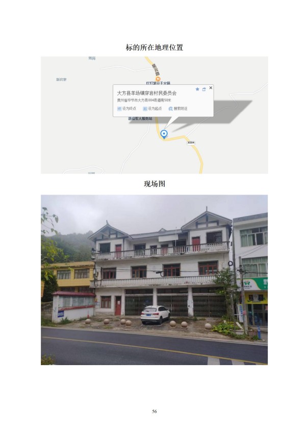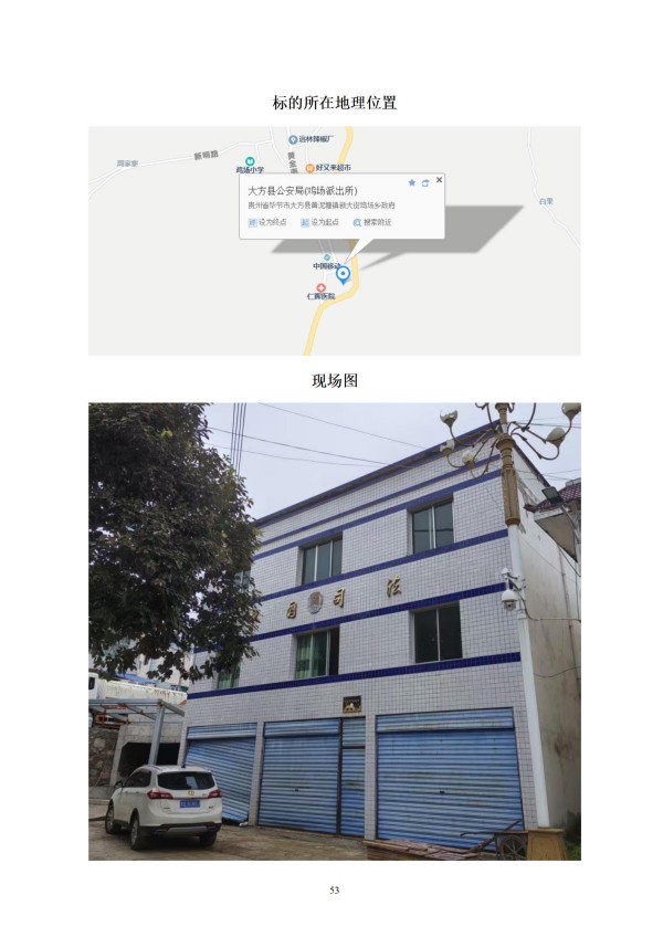 标的位于大方县鼎新乡中心村。建筑面积:58.52㎡,土地面积:77.13㎡,建筑结构为砖木结构,总层数为1层,土地性质为划拨。