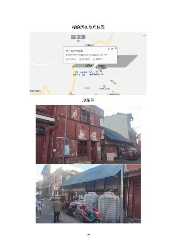 标的位于大方县雨冲乡街上。建筑面积:218.78㎡,土地面积:173.98㎡,建筑结构为混合结构,总层数为2层,土地性质为划拨。