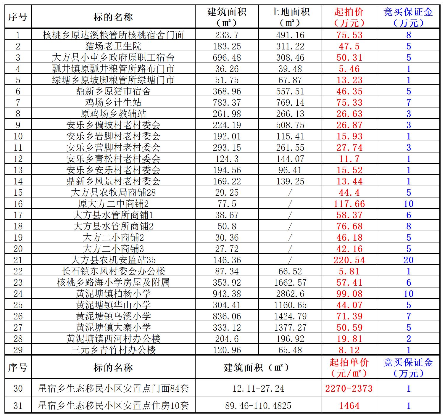 【12月17日】大方县城、核桃乡、猫场镇、瓢井镇、绿塘乡、鼎新乡、安乐乡、长石镇、鸡场乡、三元乡、黄泥塘镇、星宿乡房地产拍卖公告