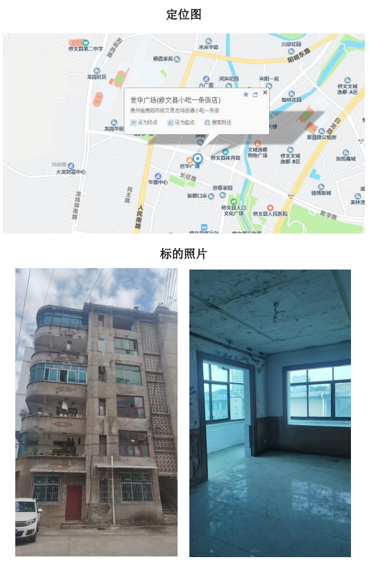 拍品编号7:贵阳市修文县龙场镇迎春坝(建行宿舍)A幢6层12号住宅用房