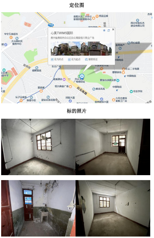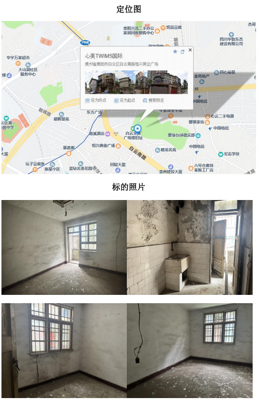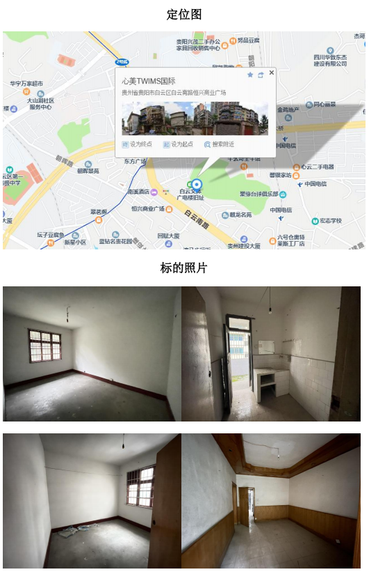 6.贵阳市白云区白云南路50号2单元4层8号成套住宅用房,建筑面积:54.50㎡,起拍价:18.13万元,竞买保证金:5万元;