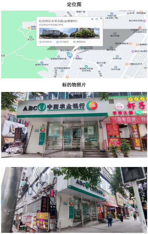 标的描述:标的坐落于遵义市红花岗区中华北路天安花园1层(409号),总楼层为9层,拍卖标的所在层数为第1层,规划用途为商业用房,建筑面积:209.07㎡。土地使用权面积:21.58㎡,使用权类型:出让,地类(用途):办公。结构:混合结构。