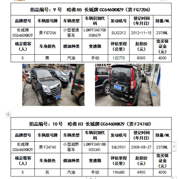 受委托,我公司定于2020年4月22日(星期三)下午14:30在贵州大方农村商业银行七楼会议室公开拍卖以下车辆: