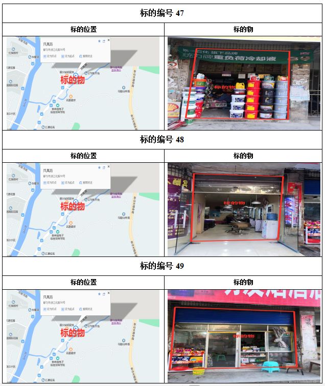 2021年1月28日下午14:00拍卖标的共计38个标的,其中:41—72号标的目前均为租赁状态,如承租人参与竞租,其享有同等价位优先购买权,其余73—78标的为闲置状态。
